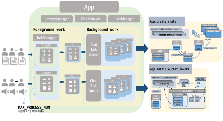 이를 위해 Chat Task는 내부적으로 세션 ID를 기준으로 관리되며, 같은 세션의 요청은 논리적으로 연결된 작업 흐름을 유지합니다. 반면 서로 다른 세션의 Chat Task들은 Task Manager에 의해 병렬로 실행될 수 있습니다. 이 구조 덕분에 특정 사용자의 요청이 느리게 처리되더라도, 다른 사용자의 요청이 그 영향을 받지 않습니다.