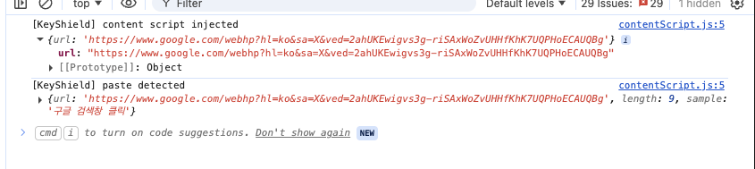 content script가 정상적으로 동작하는지부터 확인했습니다.
