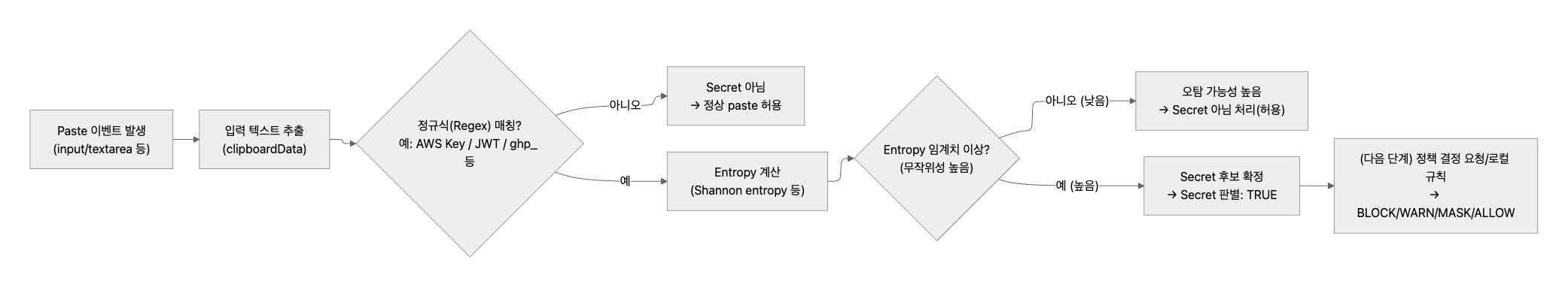 Secret으로 판단된 경우, paste 이벤트의 기본 동작을 차단했습니다.