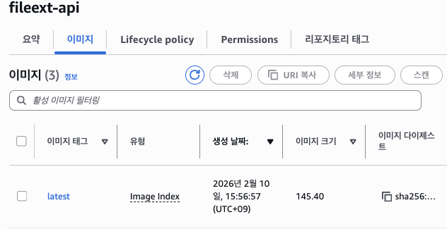 해당 ECR 에 들어가서 실제로 존재하는지 확인을 한다. (배포과정에 대한 설명은 생략,, gpt가 잘 알려줌 ㅜ)
