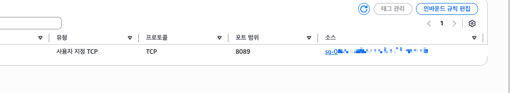 | TCP | 8089 | 위에서 만든 보안 그룹 | ALB에서만 접근 허용 |