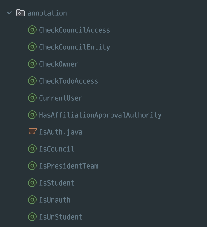 // @IsStudent, @IsUnauth 처리 메서드도 유사하게 구현...